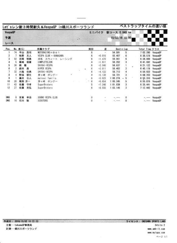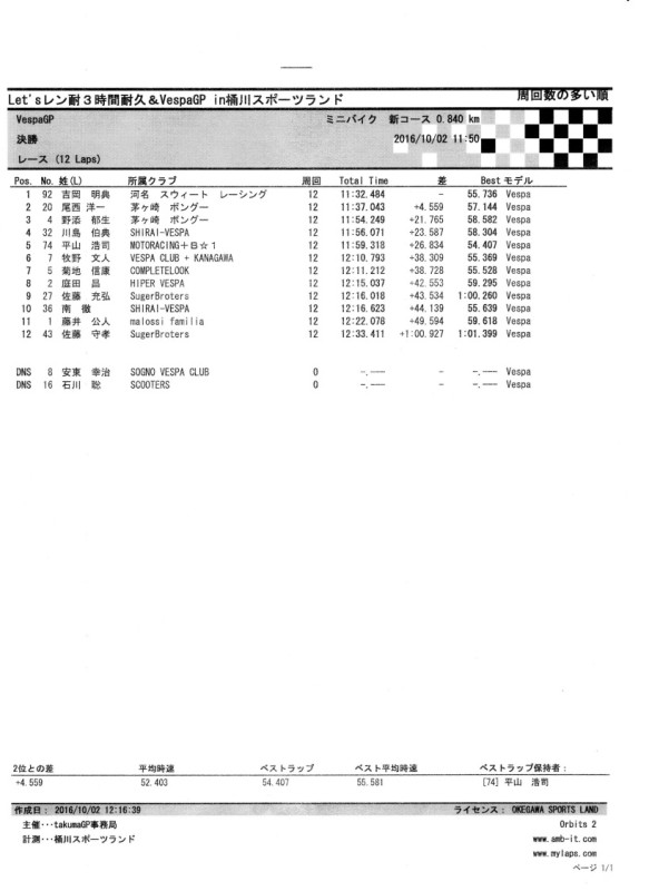 ■ 2016,10,02 VespaGP 4th Stage in Okegawa sports land