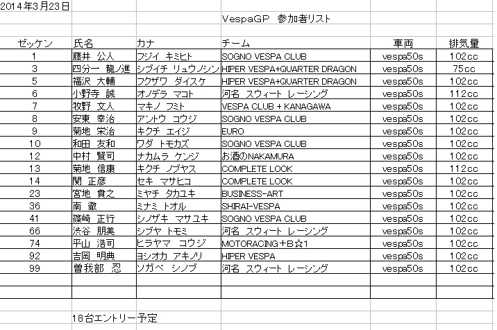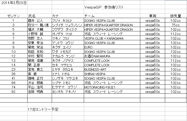 当日はまるち杯と74Daijiroカップの中にVespaGPのクラスが組み込まれる形になります。