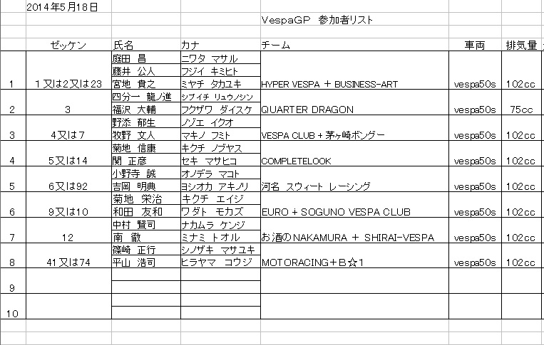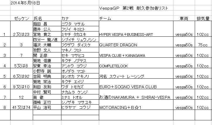 なお、VespaGP参加者は申請が間に合わなかった場合は当日¥500の掛け捨て保険に加入していただきます。