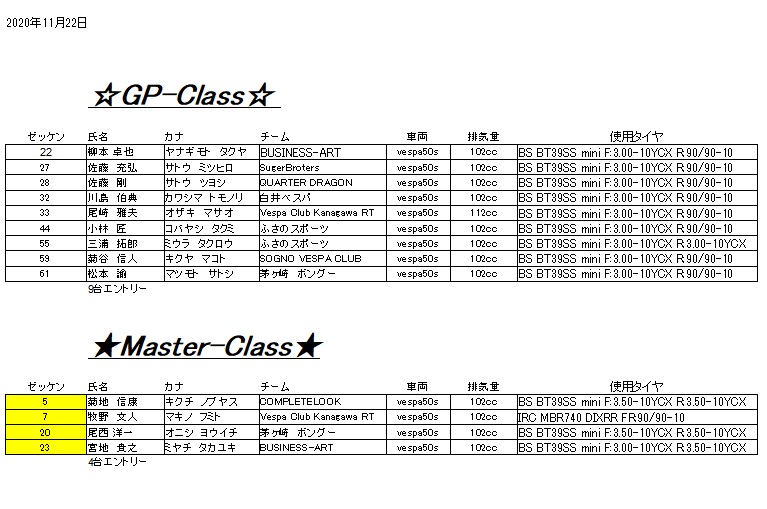 11月22日に行われるVespaGP第3戦のエントリーが決定致しました。