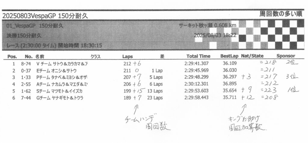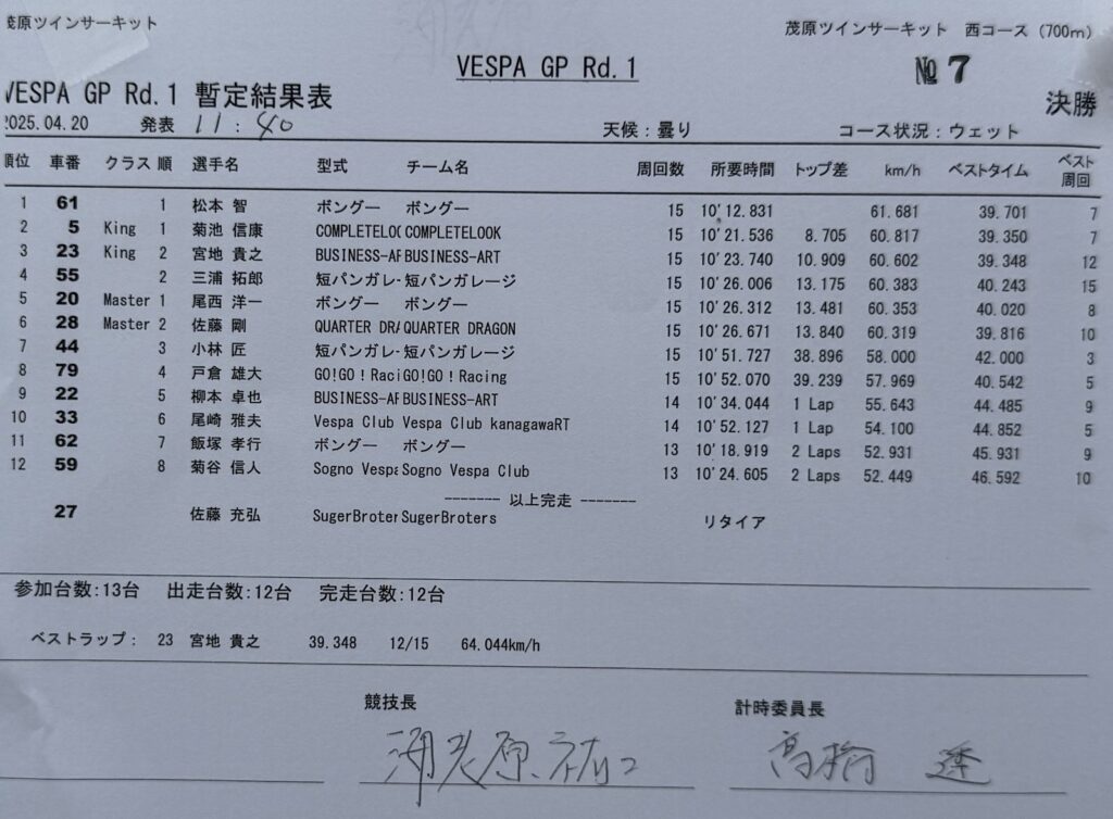 ※ 2025年11月23日 VespaGP第5戦