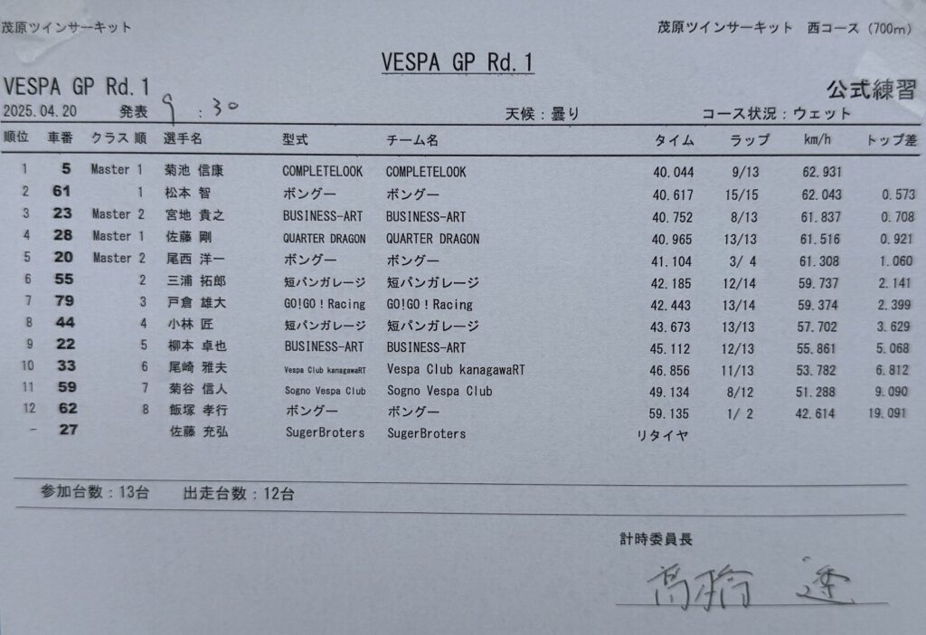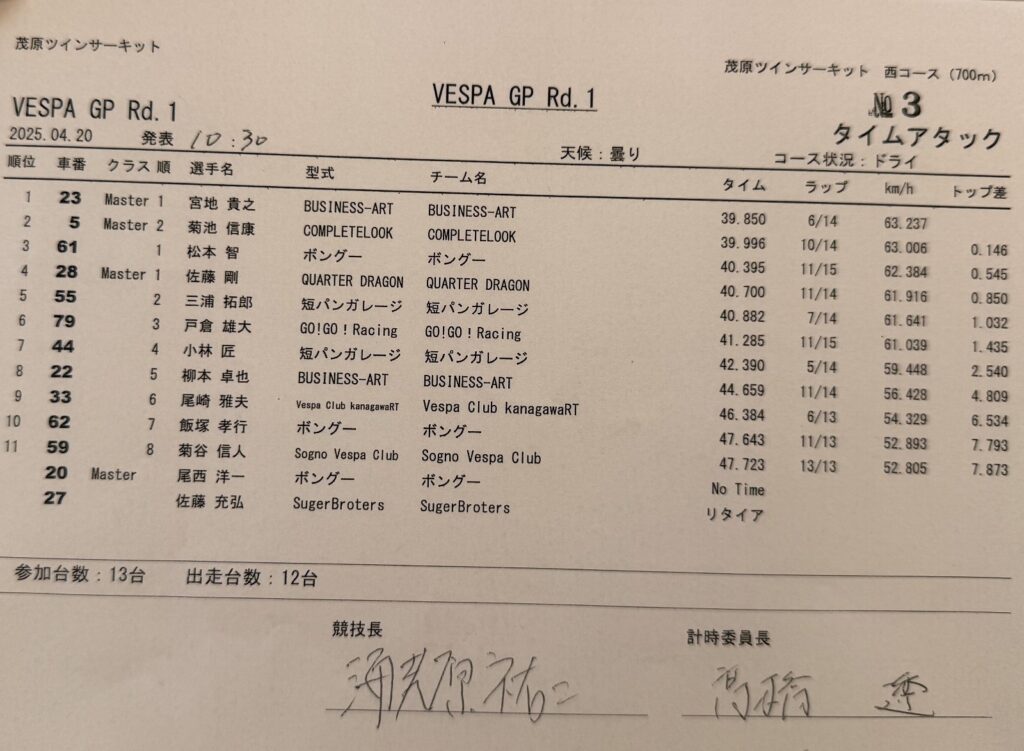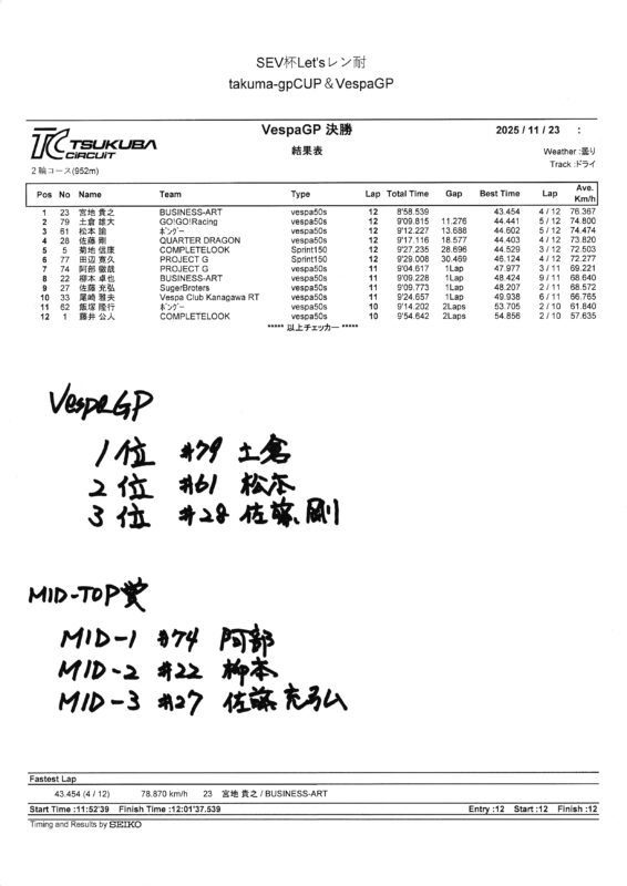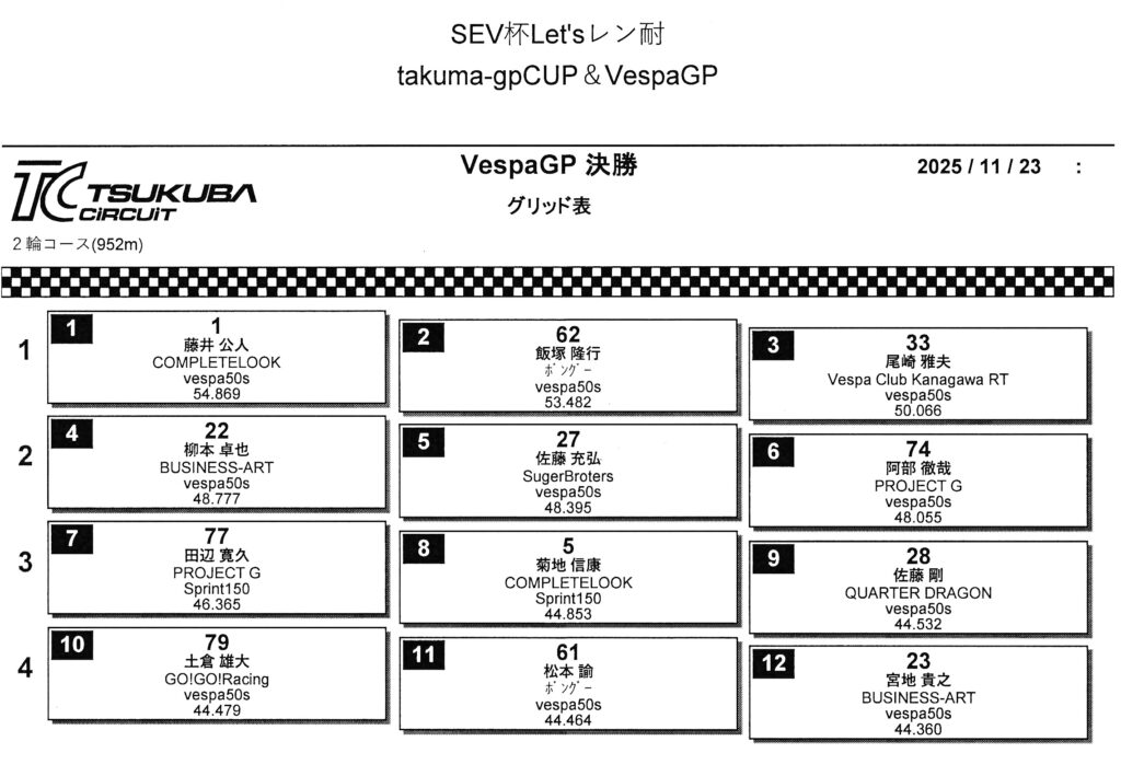 2025年11月23日 VespaGP 第5戦(最終戦)