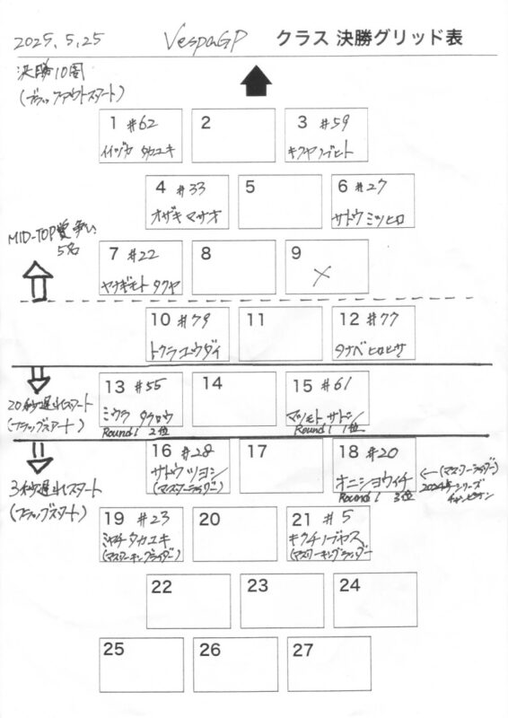 ここで、最終戦の参加者をグリッド順位紹介いたします。