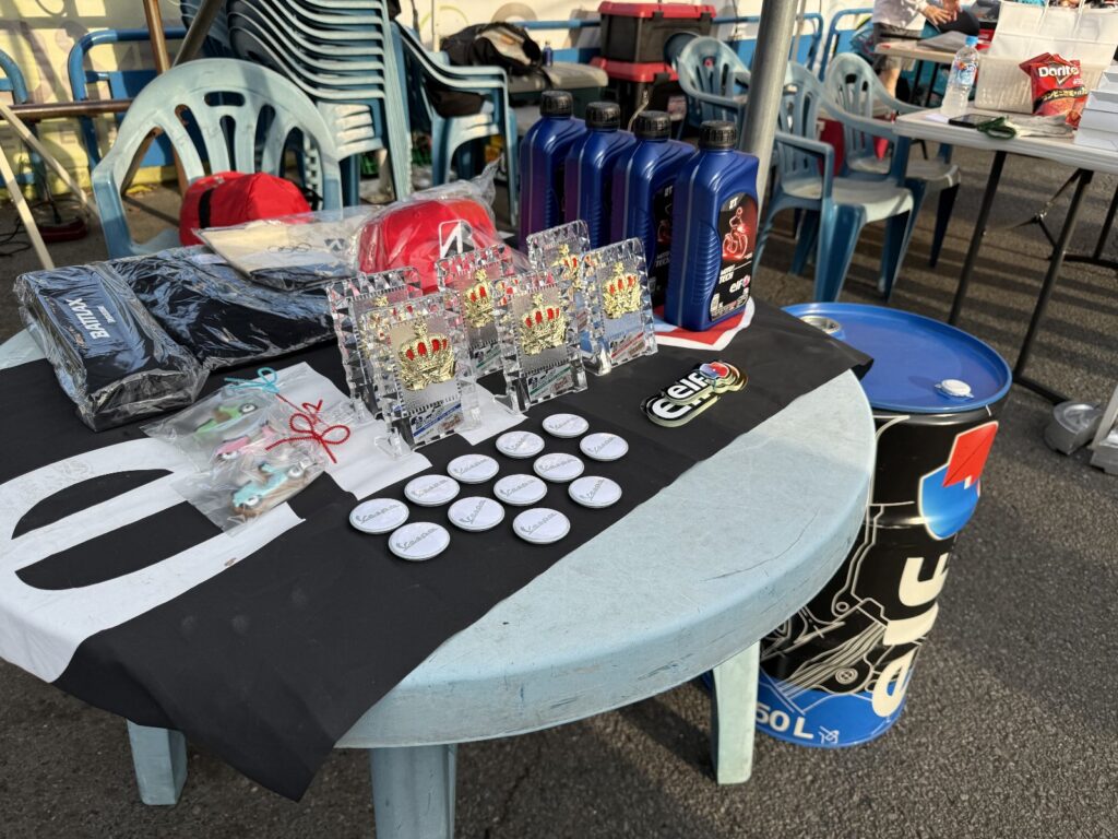 表彰も終わり最後にピアッジオグループジャパン様より協賛頂きましたアパレルやグッズを