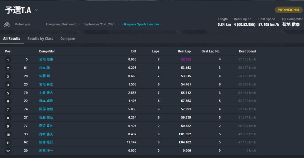 予選タイムアタックの結果。