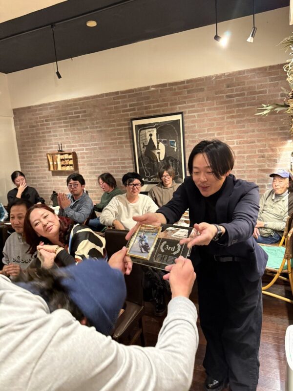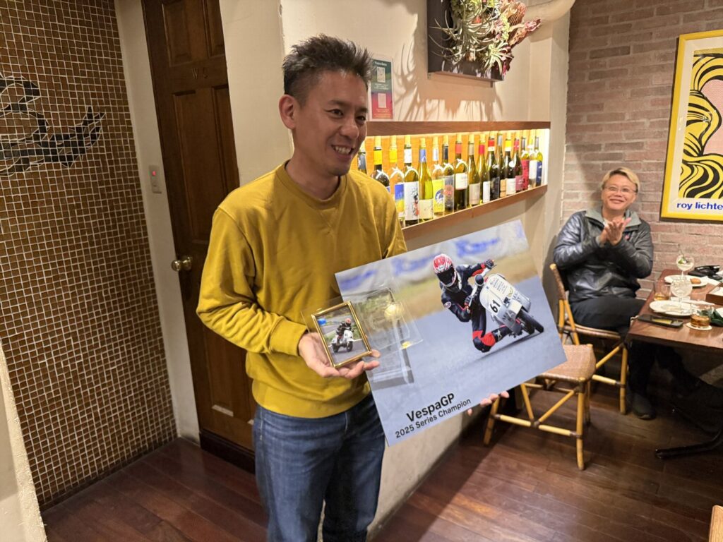 ベスパ東京日本橋からのチャンピオンへの賞品の贈呈。