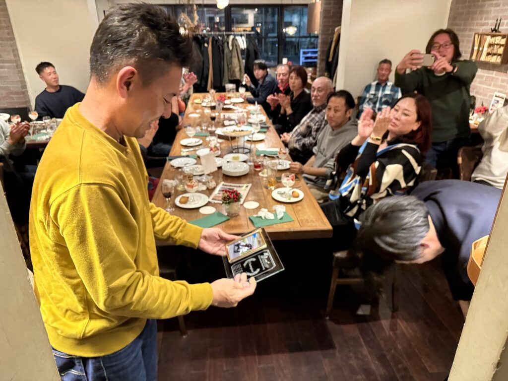 そこで、美味しいお料理を頂きながらシリーズ表彰の盾の受賞式を行いました。